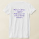 My overall review is that the T-shirt is nice, it fits true to size however the font is significantly smaller than advertised and you can't read it. The printing is unreadable and there is a strain to read it. It does not look like the advertised product. Maybe the shirt color is darker or a larger more visible font should have been used. Photos with and without flash and font is barely legible.