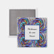 This vibrant and bright magnet features swirls and spirals of blue and gray. The frame in the center provides a solid background for your text of welcome for your new team member. All text can quickly and easily be customized to suit your needs. The solid background colors may also be adjusted if you desire.