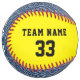 Team Name Number Denim Jeans Photo Custom Softball. Modern design with blue jeans, denim and yellow background. This custom and personalized softball is a perfect gift for softball players, teammates, coaches, your friends and family. Personalize it with your photo, team name, your name, your number and the year. Great keepsake to remember your favorite sport. To customize the ball click the customize button and easily use the design tool.