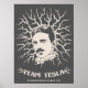 Drawing of Nicola Tesla with electricity arcing off of him and, "Team Tesla" text caption in old-timey lettering.