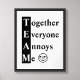 If you are over group projects and office small talk, bring a dose of sarcastic truth to your workplace with this bold black and white typography poster. Featuring the snarky redefinition of “TEAM” as “Together Everyone Annoys Me”, this minimalist print is great for cubicles, home offices or shared workspaces, where a little humor goes a long way. A fun conversation starter (or warning sign), this poster is available in both print and instant download.