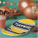 This sporty, athletic design features bold TEAMWORK text inside a highlighted wide black stripe with double white racing stripes against bright yellow outer stripes. The text in this design can be personalized.