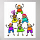 Cute cartoon whimsical illustration of a group of little stick figure boys and girls standing on each others shoulders to form a triangular tower of support and unity. Easily customize and choose your own background color or add text. Image available on various gifts and products.