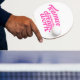 Typographical slogan ping pong bat in pink graphic text on white. Reads: Teamwork makes the dream work. Ideal for ladies doubles who need to work together as a team or for team events. Uniquely designed by Sarah Trett.