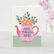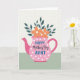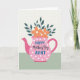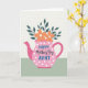 This design shows a hot pink teapot-like vessel covered in large white polka dots, set against a cream background with a faint grid texture. From the opening, deep teal leaves spread outward as if leaning in close, holding three coral-orange flowers with small white centers that feel like gentle little hearts ❤️. The wording “HAPPY Mother’s Day AUNT” sits on the front of the vessel, with “HAPPY” and “AUNT” in teal uppercase letters and “Mother’s Day” in a flowing teal lettering style across the middle. The teal text mirrors the foliage color, tying the message into the bouquet as though it’s part of the arrangement. A muted sage green strip at the bottom acts like a tabletop, grounding the bright vessel and flowers. The flat shapes and simple lines keep the focus on the tender, celebratory scene, with the bouquet rising like a friendly greeting 🌼. The cream backdrop is patterned with a light grid, and the sage green base forms a calm band beneath the vessel.