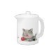 Cute cats on a tea pot playing with yarn. We love these cute grey cats they are fun and friendly!
