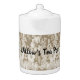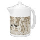 Teapot with vintage lace in beige on a white large pot. Thanks to Creative Fabrica for the lace design. The name on the teapot can be changed.