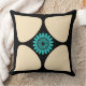 Tear Drop Flower Cream Turquoise Black Graphic Throw Pillow
