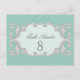 Tear Drop Lace, Aqua Blue Table Number Cards