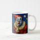 Add dramatic flair to your drinkware with this striking ceramic mug featuring a tearful clown illustration. Dressed in a bold red costume with a golden ruffled collar and pointed cap, the clown’s sorrowful face—painted with blue teardrop makeup and a red nose—is set against a moody night sky lit by the moon and glowing street lamps. This design captures the timeless beauty of circus nostalgia, blending emotion and artistry in a unique way. Perfect for collectors, carnival enthusiasts, or anyone who enjoys expressive, story-rich designs in everyday use.