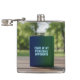 Well made flask, a little better than I had expected. Flask came in clear plastic box which gave it a nice presentation when I took it out of the zazzle packaging. Image is not printed on flask but on sticker. Don't know how this will hold up I haven't used it yet. This would make a Great gift! I plan to purchase more for friends! Cheers. I thought a little brighter than computer. Very crisp, writing wasn't