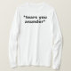 I love this shirt. I had written to the artist asking her if this picture was available on a shirt, and she wrote me back telling me where I could find the shirt. These shirts can be custom made to have a different saying. I loved this saying and went with it. The artist wrote me back later to tell me that she had seen my order go through. How's that for service? Pretty special. It's just as displayed. Perfect!