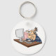 A tech support worker at a desk blowing a bubble. This design looks really effective on these Keychain