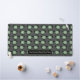 A pair of thick spectacles creates a cool nerd themed pattern on a grey background. The eyeglasses have black unisex frames and thick lenses that reflect a pale green. You can add your own fave geek joke or slogan to the text area, or personalize with a name.