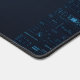 This Technical HUD Blueprint Schematic Gaming Desk Mat features a detailed peripheral design of glowing cyan data readouts and wireframe grids. Perfect for high-end gaming setups, tech workstations, or as a modern office gift. This ultra-wide desk pad offers a clean center for your keyboard while keeping the sophisticated 2D digital schematic visible on the edges.
