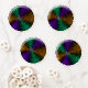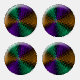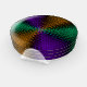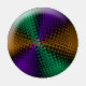 Multi-tertiary-colored glowing techno circles on a spherical surface with black background.