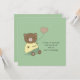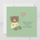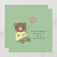 Green background, and a cute teddy bear with a pink nose...holding a balloon. The message is clear...hugs are good. Sending one is even better!