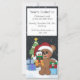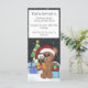 An adorable teddy bear in a Santa has, holding presents AND a penguin. Standing in the snow, near a Christmas tree with presents. Falling snow in the night sky and a North Pole sign. Teddy Bear by Whispy's D'zines