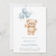 Teddy Bear 1st Birthday Blue Watercolor Invitation