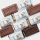 1st Birthday chocolate Hershey's Miniatures with a cute teddy bear with tie, balloons, big number and cupcake in soft light blue and beige. Cute design for first or any Birthday of a little boy. Easily personalize all the text including the number of the Birthday. - Kate Eden Art