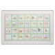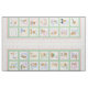 Adorable cheater quilt pattern ready for you to stitch with love. bottom left square has customizable text ready for you to add child's name and birth date. Alphabet Blocks have a rich green background. Design features a unique pastel alphabet with cute teddy bears. Border has tiny pastel hearts on white. Would be lovely as blanket or wall hanging.