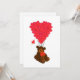 Funny cute teddy bear cartoon animal and a romantic red Valentines love heart balloon, on a customizable background
