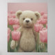Teddy Bear and pink tulip Nursery Poster
