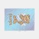 Cute teddy bear like an angel with wings on purple and blue gradient background sprinkled with stars. Optional monogram