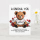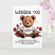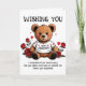 This is an AI generated design. I wanted to have a teddy bear with the text Happy Anniversary on its t-shirt. And that is how the design came out. I was trying to be funny with the text I wrote on the card.
