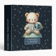 🚀 Cute Teddy Bear Astronaut Ring Binder – Personalized Baby Boy Memory Album 🌙