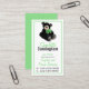 Whimsical Au Pair business card, with graphics of a black teddy bear, with a big green bow, on the top. The back of the card is done in solid green. Personalize the custom text to suit your needs.