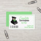 Whimsical Au Pair business card, with graphics of a black teddy bear, with a big green bow, on the top. The back of the card is done in solid green. Personalize the custom text to suit your needs.