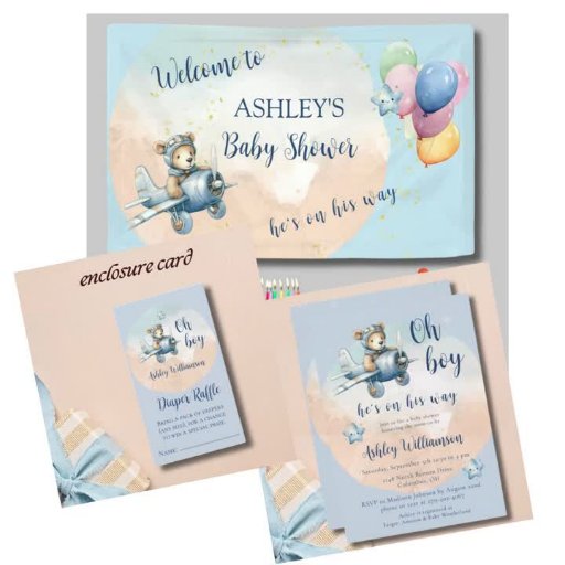 Yes! Our Independent Creators have worked hard to create many products as collections or in coordinating styles and new designs are added daily to many different products. Some popular supplies that match Teddy Bear Aviator Oh Boy Baby Shower Invitation include napkins and posters that are among our best sellers but we also have many more products you can look at.