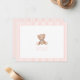 Cute Customizable teddy bear with blush pink and white pinstripe border, Baby girl, baby shower flat Thank you note card.