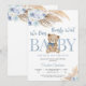 Celebrate the upcoming arrival with this adorable teddy bear baby shower invitation featuring soft pastel florals and a sweet bear illustration with a blue bow tie. Perfect for honoring moms-to-be, this charming design blends elegance and whimsy to set the tone for a joyful gathering. Personalize easily with event details and create a keepsake that guests will treasure. Ideal for boy baby showers, spring celebrations, or any bear-themed party.