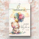 A cute, cuddly teddy bear, a bunch of balloons, butterflies, fluffy clouds and your details along with the word "Welcome" at the top are featured on this fun large baby shower poster. (Smaller sizes done for you in our collection.) MATCHING items in our collection.