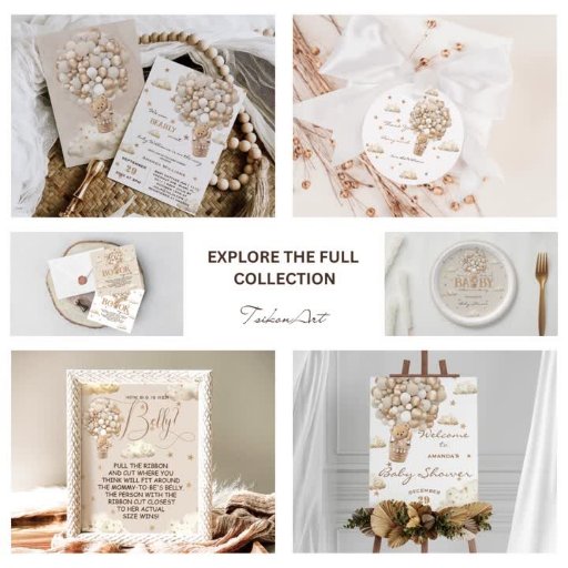 Step into a whimsical hot air balloon adventure with our traveler bear! 🌟 Amidst soft neutral tones and shimmering gold glitter stars, a charming baby teddy gracefully floats in an elegant beige and gold balloon. 🐻🎈 With minimalist design and heartwarming typography, 💖 this teddy bear design elegant thank you card is perfect for your baby shower celebration!