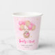 Watercolor teddy bear pink balloons We can bearly wait baby shower paper cups. Matching items available.