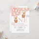 Celebrate your little ones milestone with this adorable teddy bear hot air balloon first birthday invitation. Featuring pastel pink, peach, and white balloons with cuddly bears, this whimsical design sets the perfect tone for a sweet and memorable party. The soft cloud background and playful "ONE- lettering make it ideal for baby girl birthdays. Personalize with your details to create a charming keepsake that guests will love.