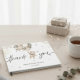 Capture sweet memories with this adorable foil baby shower guest book featuring a cute teddy bear holding pastel balloons and elegant “thank you” script. Perfect for gender-neutral celebrations, this design adds charm to your baby shower décor while giving guests a lovely keepsake to sign. Personalize with the baby’s name and date for a unique touch.