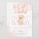 Teddy Bear Balloon Girl Bearly Wait Baby Shower Invitation