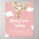 Step into a world of whimsy and anticipation with our Teddy Bear Balloon Pink Dont Say Baby Game Poster, a heart warming celebration where dreams take flight amidst a backdrop of soft pastel hues and retro charm. This enchanting design features a darling beige bear soaring in a basket, lifted by a magnificent air balloon crafted from an array of small beige and gold balls. Each detail is lovingly crafted, capturing the essence of joy and excitement as the little one's arrival draws near. The soft pink background envelops the scene with a gentle warmth, while the retro font adds a touch of nostalgic elegance to the overall composition. Matching items available.