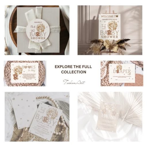 TsikonArts' adorable beige light brown baby shower diaper raffle card! Cute teddy bear nestled among soft beige and ivory gold , surrounded by a dreamy backdrop of watercolor pastel light brown hearts.🧸It's the perfect way to set the tone for your minimal bohemian-style affair! ✨ Don't forget to explore the full collection.