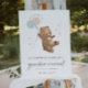 Welcome guests to your gender reveal party with this sweet sign. It features A watercolour bear holding a blue balloon and a pink balloon along with star elements