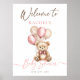 Teddy bear with balloons pink girl baby shower welcome poster.