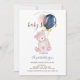 Teddy Bear Balloons Pink Striped Baby Shower Invitation