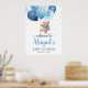 Watercolor Teddy Bear Blue and Silver Gold Balloons Welcome Baby Shower Sign.