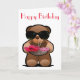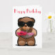 Cute cartoon teddy bear with sunglasses and cocktail drink. Custom birthday greeting card template.