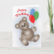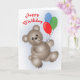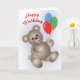 Cute birthday teddy bear holding 3 balloons. Blank inside.