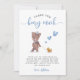 Cute teddy bear theme boy's birthday party thank you card featuring watercolor illustration of a cub in a sailor outfit with a duck toy and blue heart. The message thanks guests for attending the party. The text at the top says "thank you BEARY much!"